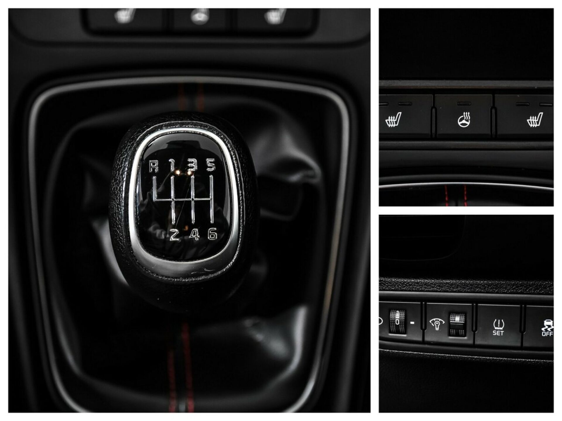 - Сиденья с отделкой искусственной кожей и с красными вставками