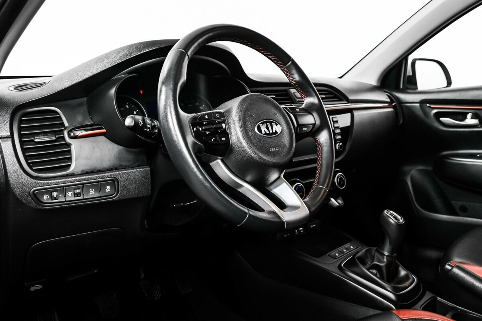 - Красные молдинги на центральной консоли и дверях